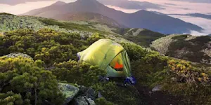 a military encampment made with tents or improvised shelters, usually without shelter or protection from enemy fire